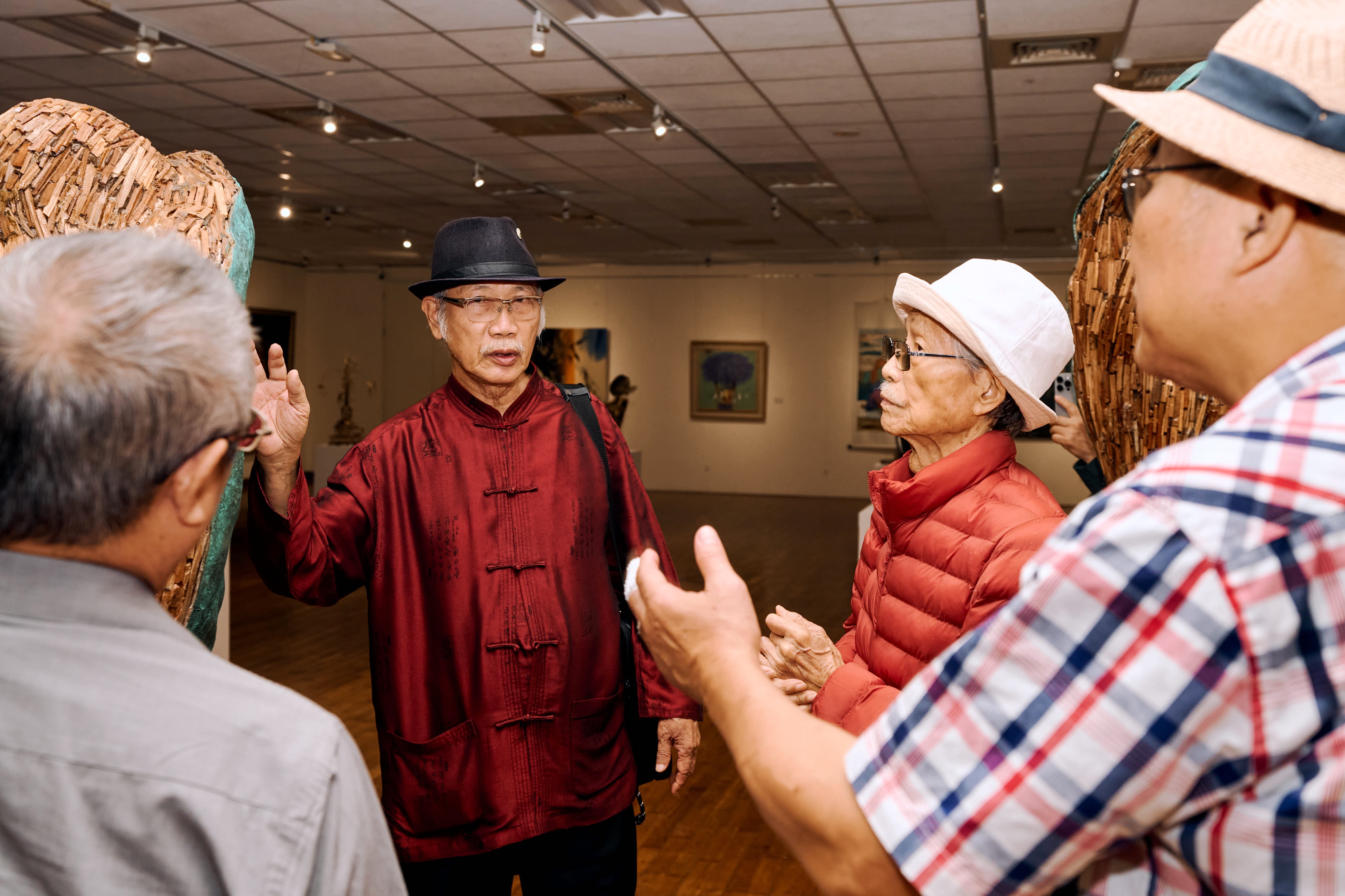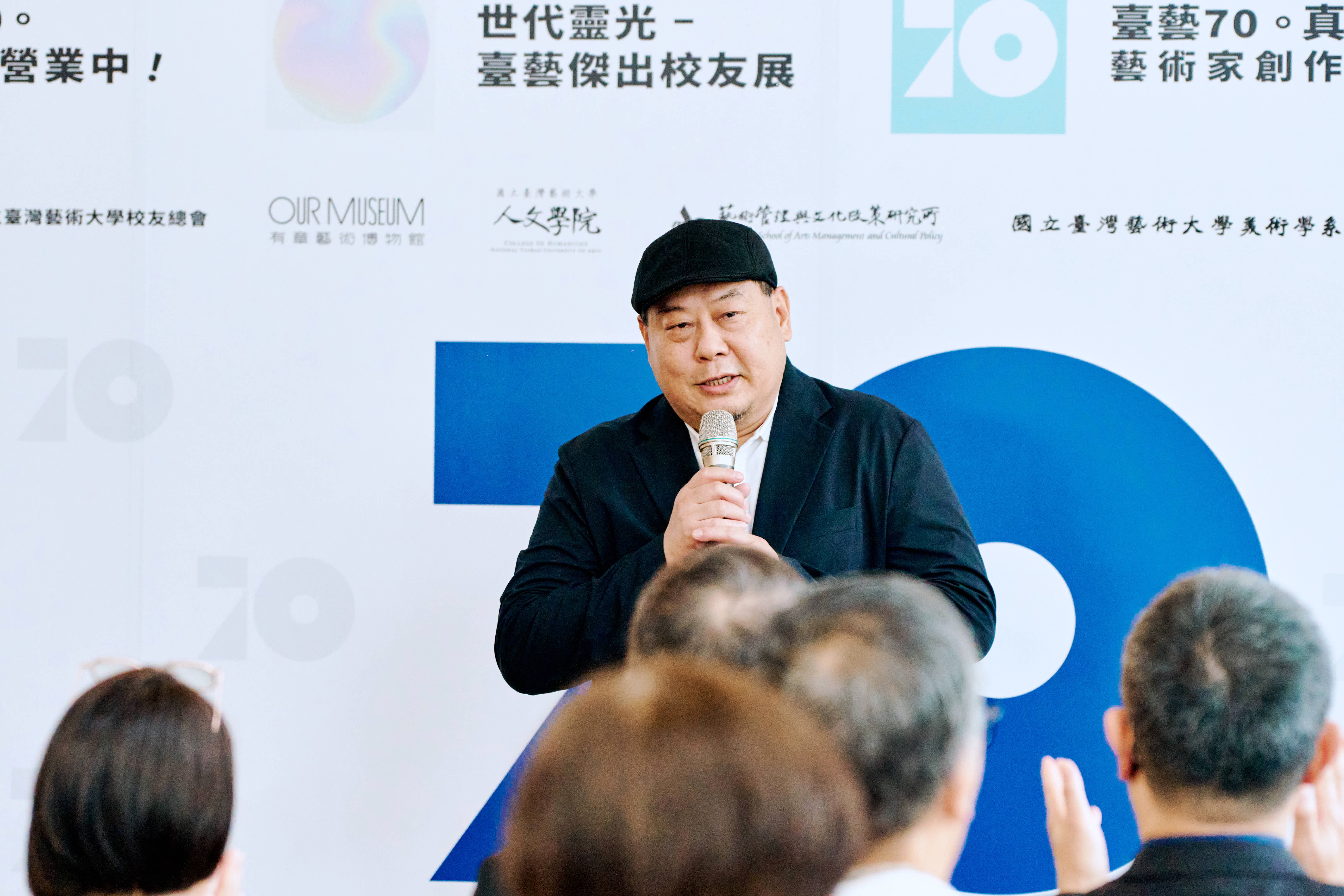 人文學院藝術館理與文化政策研究所林玟伶老師,導覽《佳餚美味-共食共時》展區。