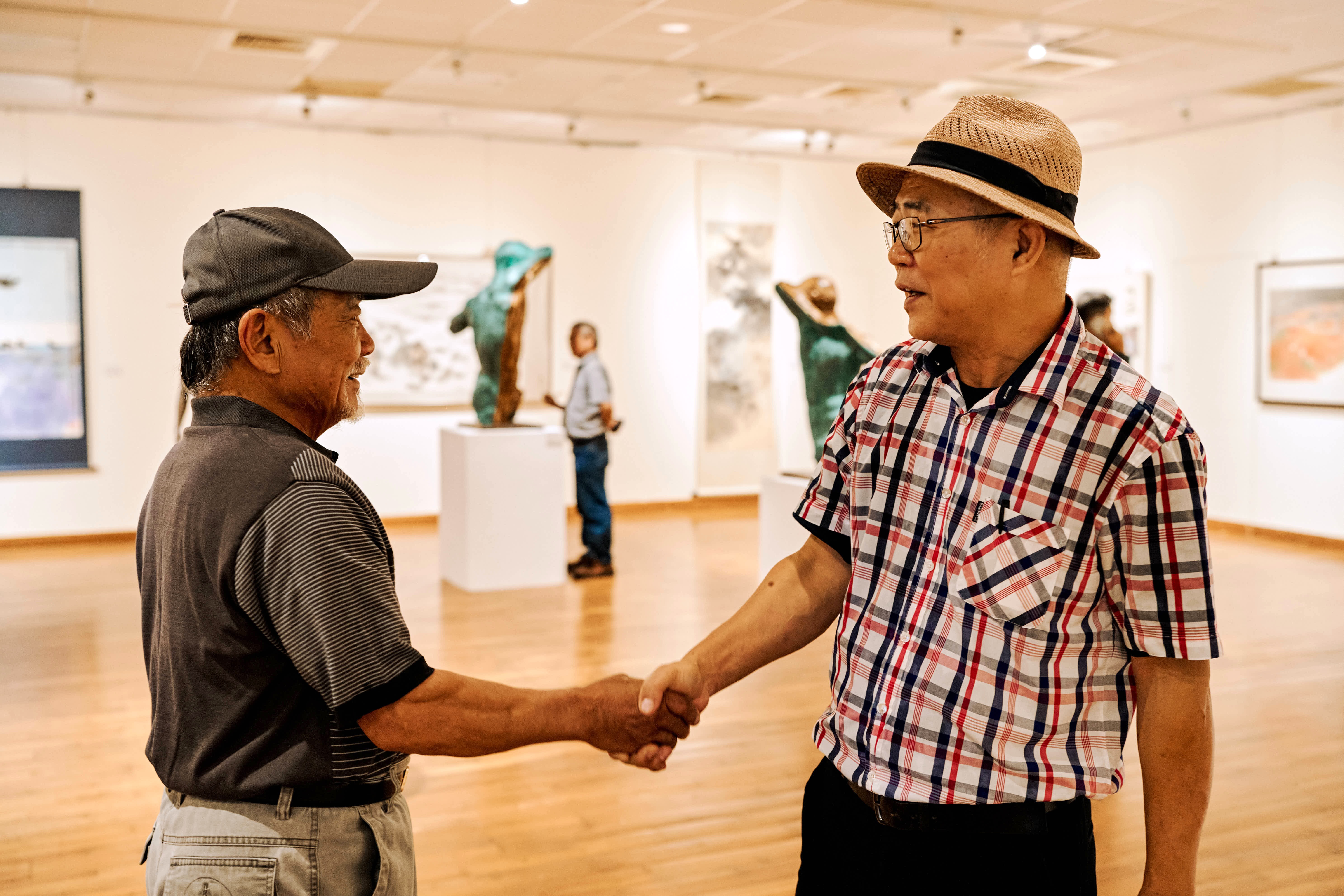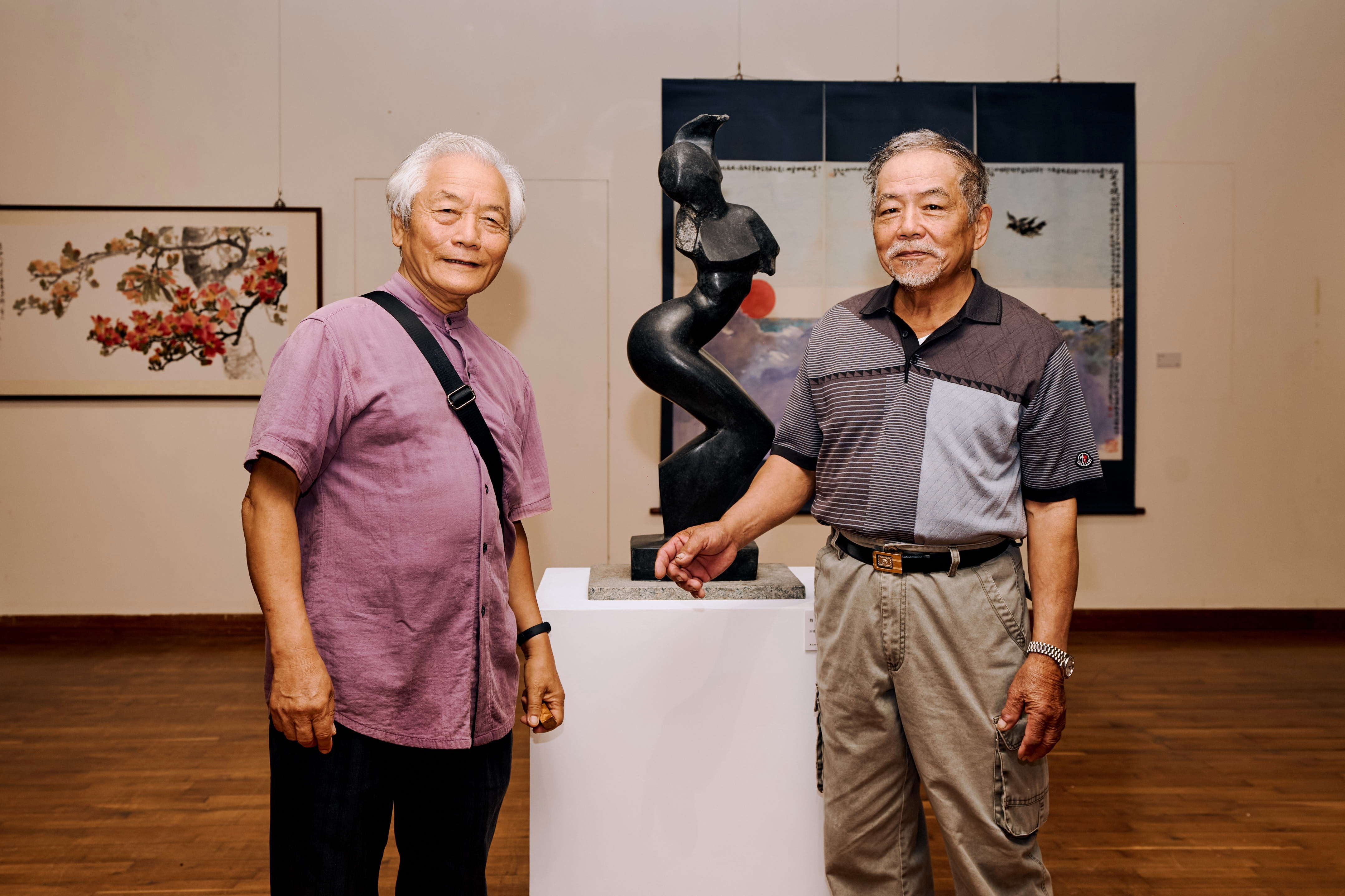 開發老闆洪伯(左)與館長李宗仁(右)。